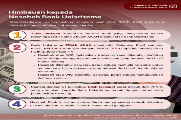 Menjamin simpanan dan pinjaman anda. BPR Unisritama terdaftar dan diawasi oleh OJK serta dijamin oleh LPS.