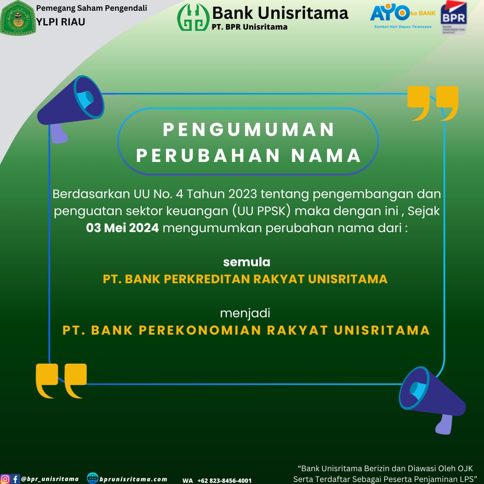 Pengumuman Perubahan Nama PT. BPR UNISRITAMA