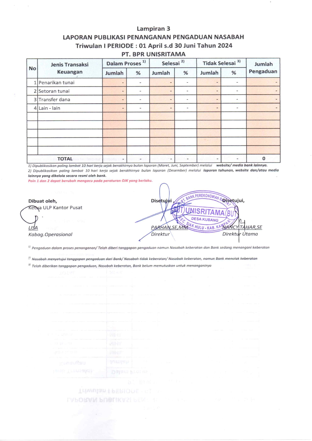 LAPORAN PUBLIKASI PENANGANAN PENGADUAN NASABAH TRIWULAN I 2024