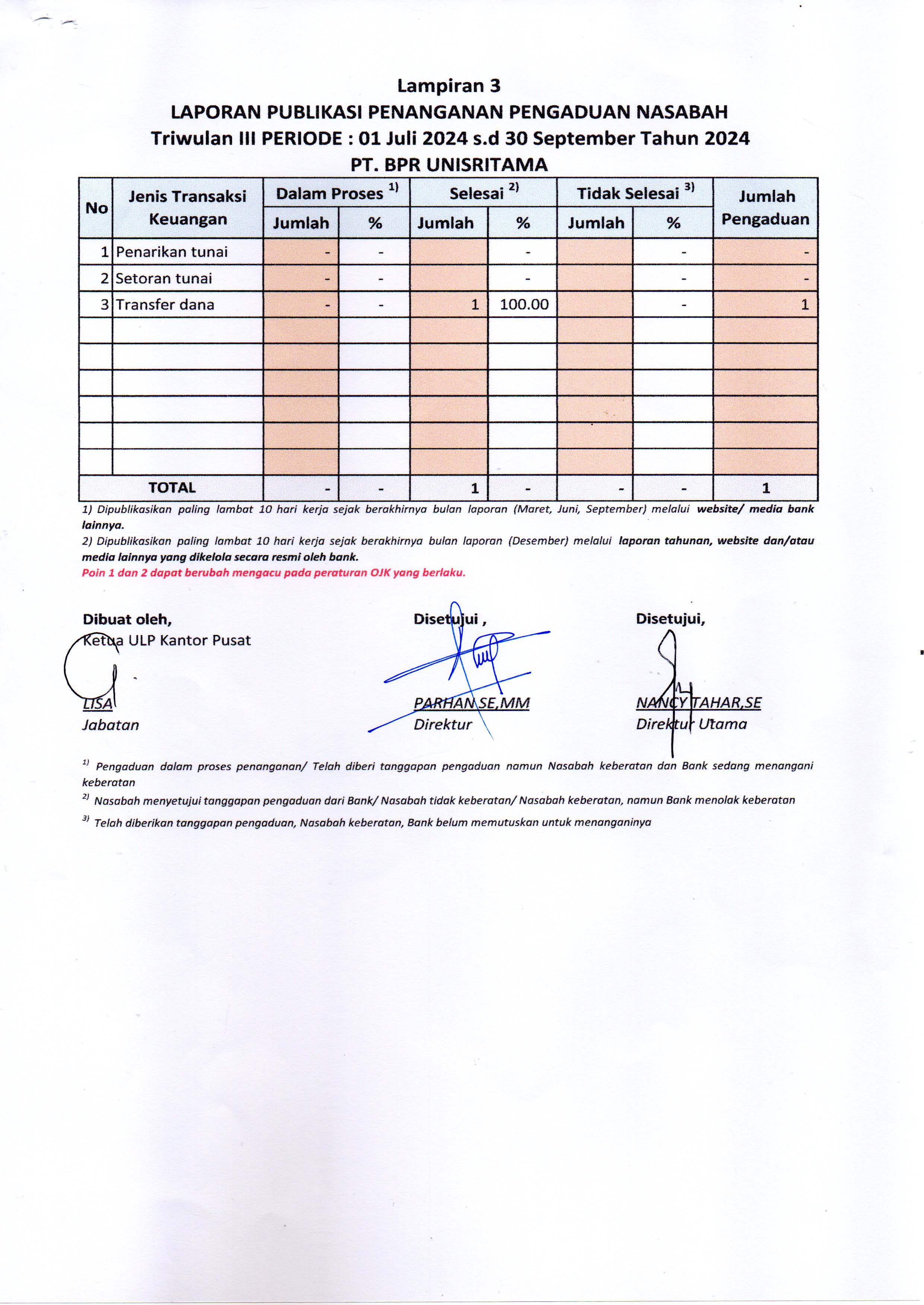 LAPORAN PUBLIKASI PENANGANAN PENGADUAN NASABAH TRIWULAN III 2024